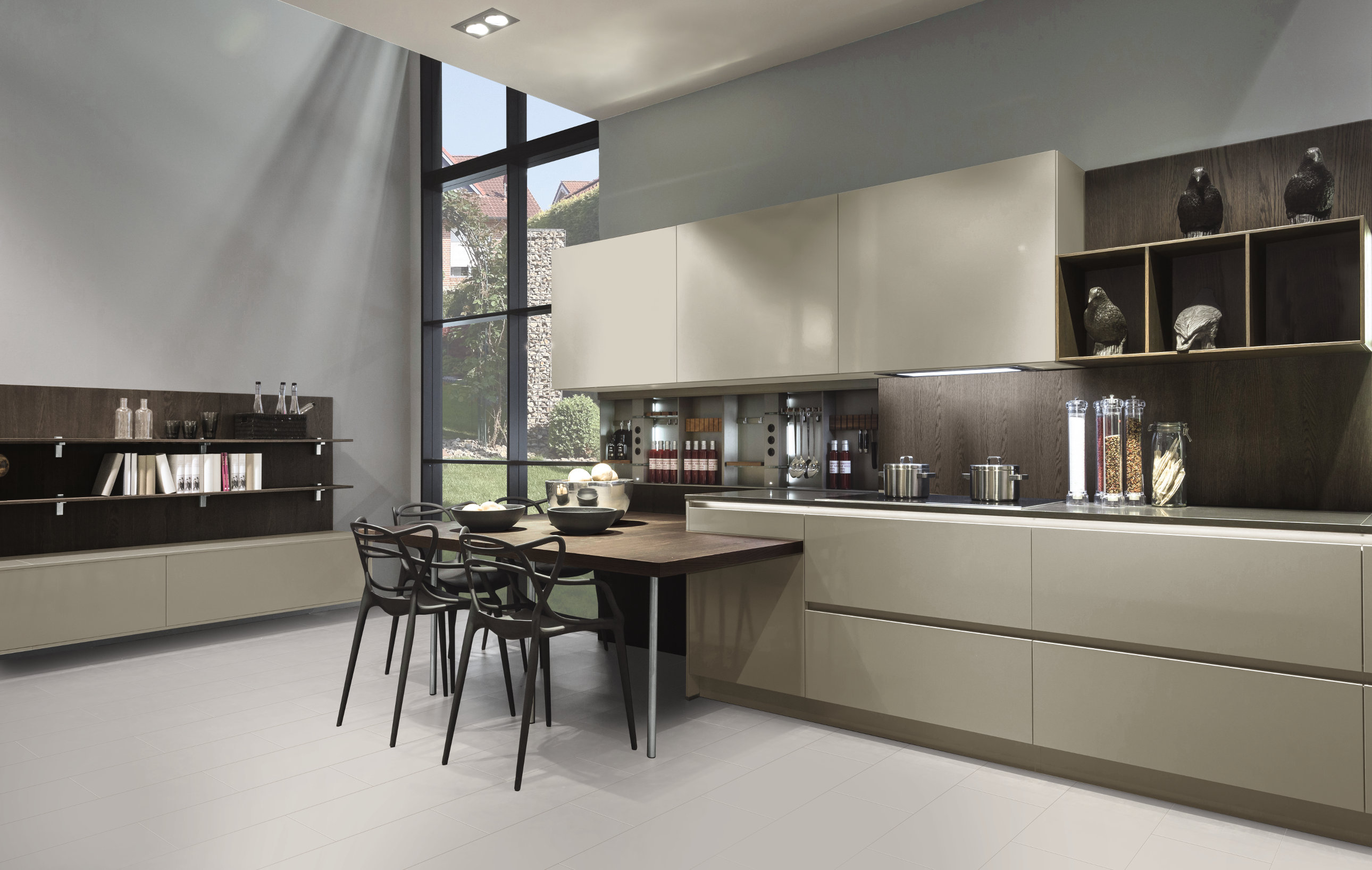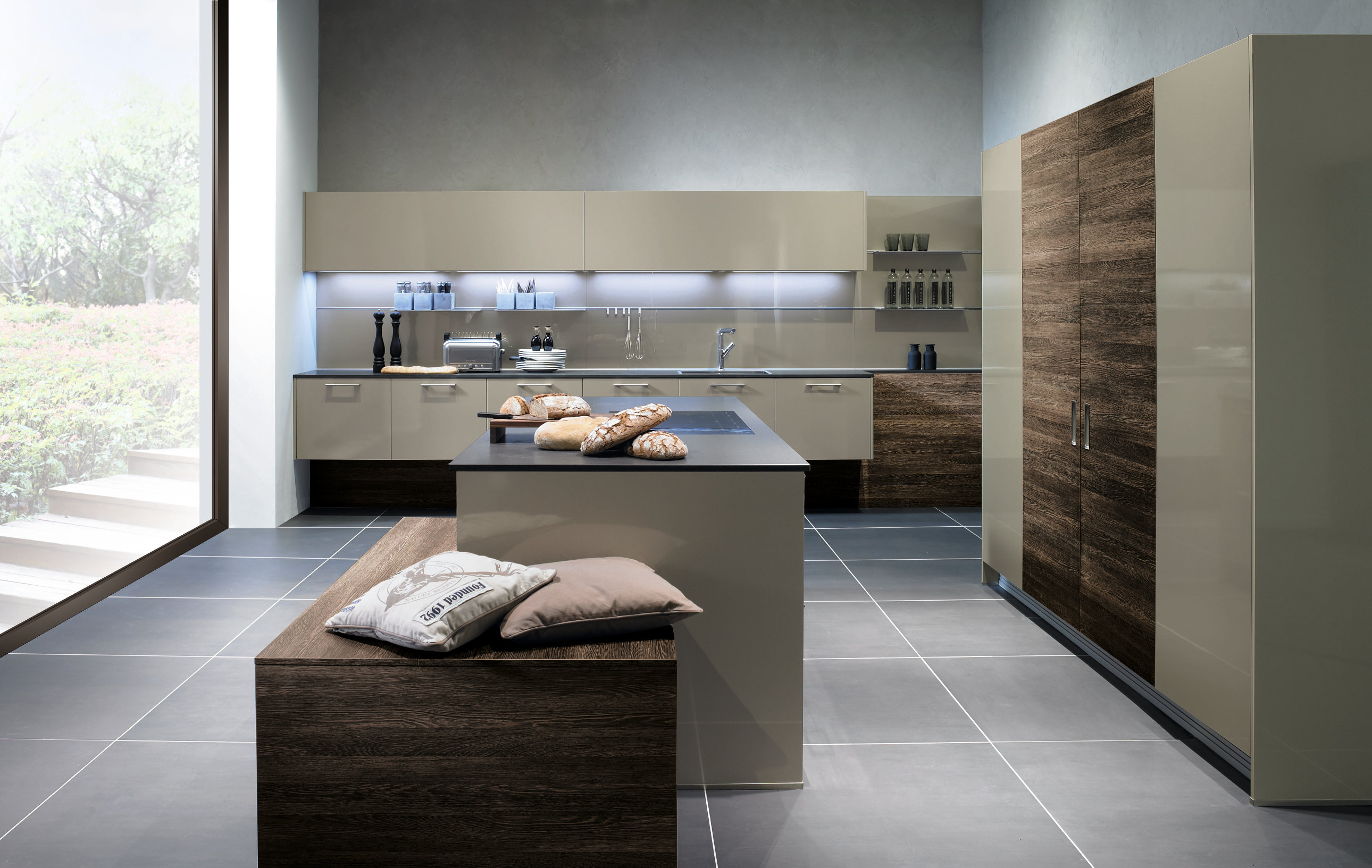 Gloss kitchens can be easily and successfully blended with other colours and materials, including wood, stone and stainless steel