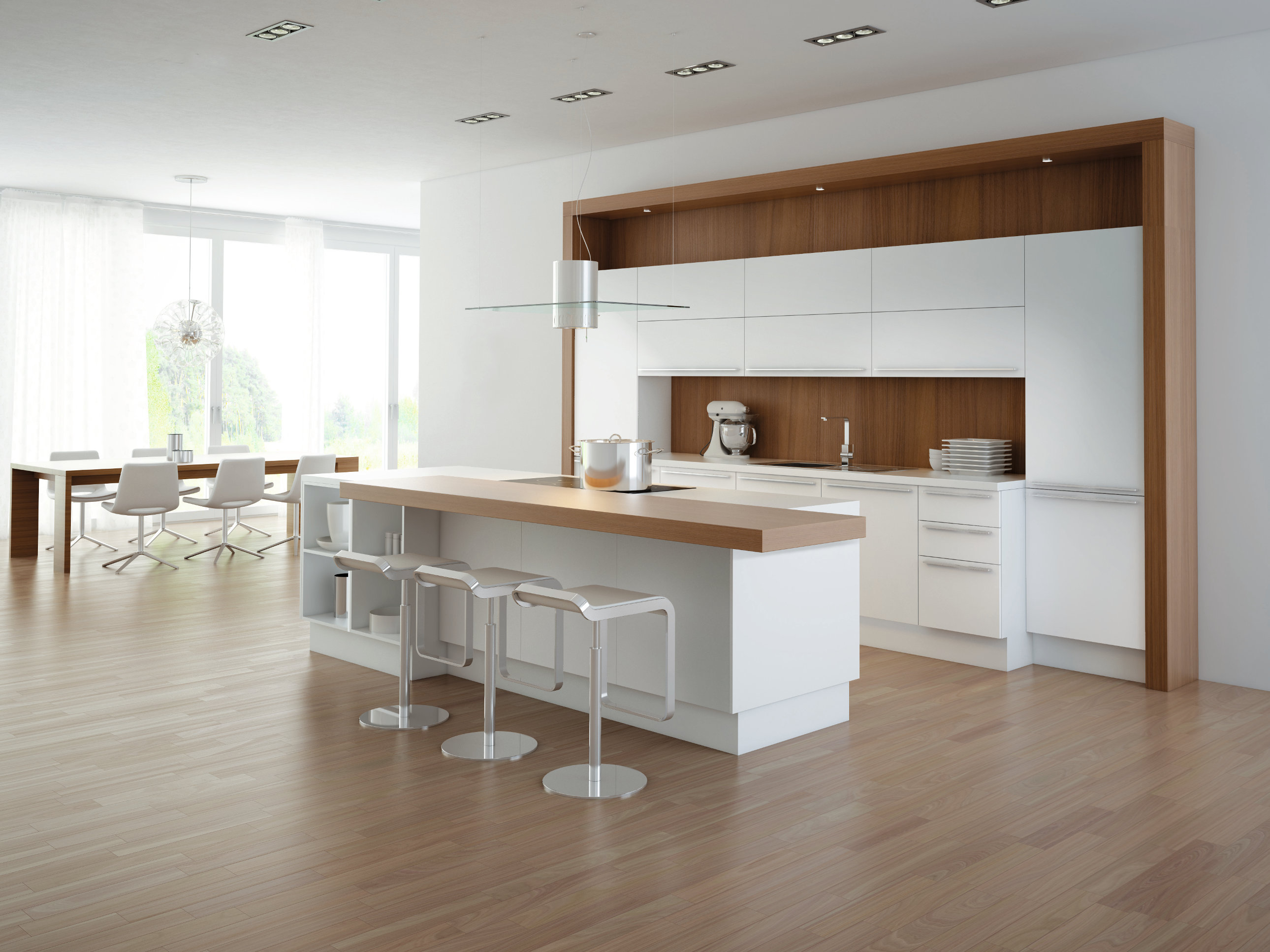 As light hits the surface of a gloss kitchen door it will be reflected back across the room