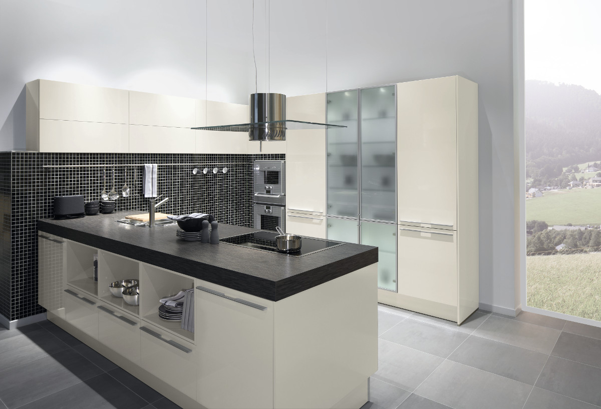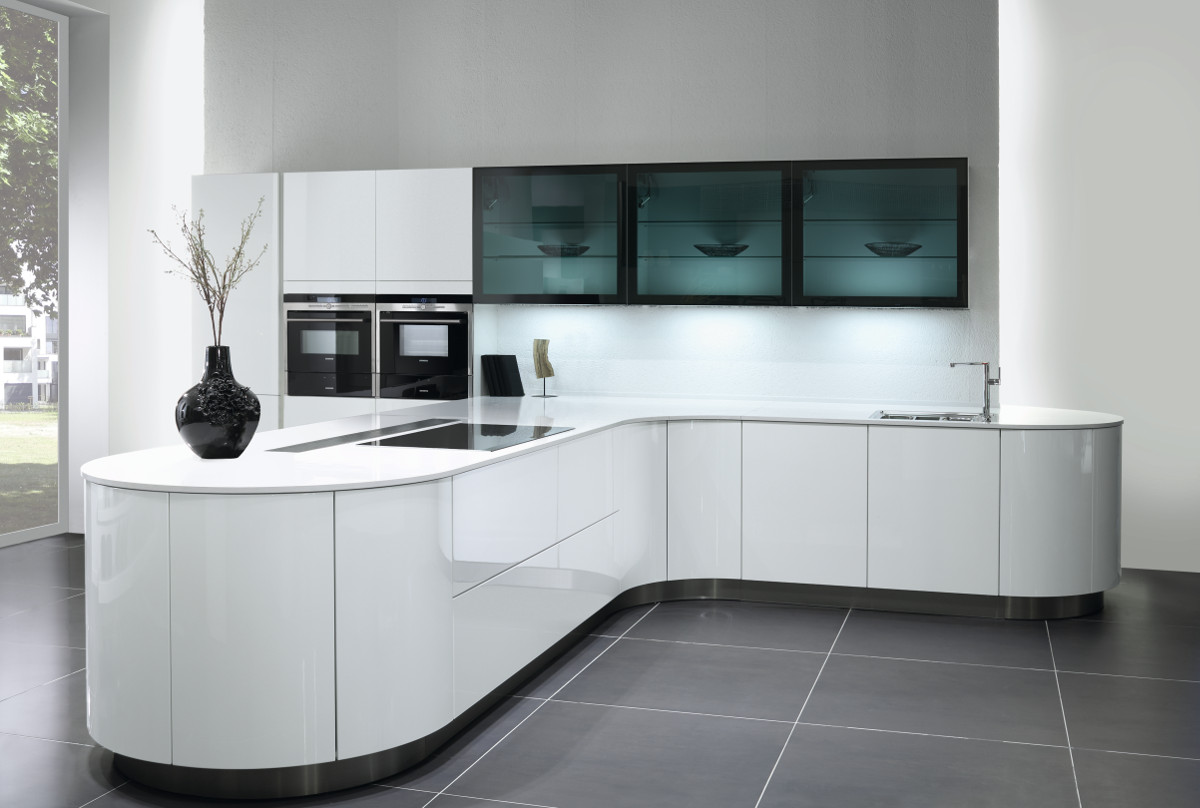 White gloss kitchens generally affect a very warm, modern and stylish kitchen look. They work for any room space and size, and are further beneficial as they will reflect the maximum amount of light within a room. Apart from a brightening effect, this can make a space feel larger than its actual dimensions. White gloss kitchens are therefore an ideal choice for small kitchen spaces (as well as much larger settings). Our white gloss kitchens are available within gloss glass, lacquer, laser laquer, and laminate kitchen finishes, all of which can be manufactured in our popular handle less X-Line and Y-line kitchen option.