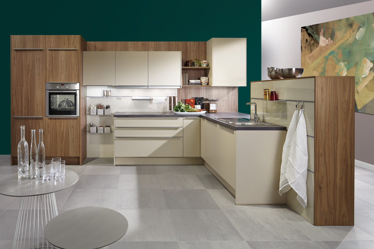 The Arctic white is a very sharp white, ideal for spacious contemporary settings. The Brilliant white is a slightly warmer tone than the Arctic white, and a colour specially designed to complement Mile’s oven range in the same Brilliant white finish. The mid-white kitchen tone is warmer than the other two, producing a softer kitchen look. In addition to these shades of white we also have a Light grey kitchen option. Of course we appreciate that grey is distinct from white but essentially the Light grey finish is a white tone with just a hint of grey; in certain settings it can be hard to tell apart from white.